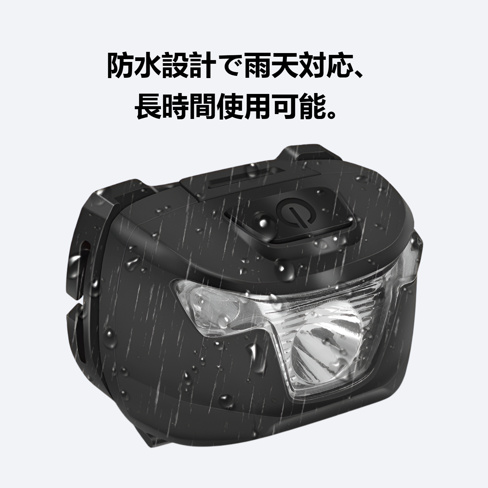 屋外用の軽量防水ヘッドランプ。防水設計で雨天対応、長時間使用可能。キャンプや夜間作業に最適。