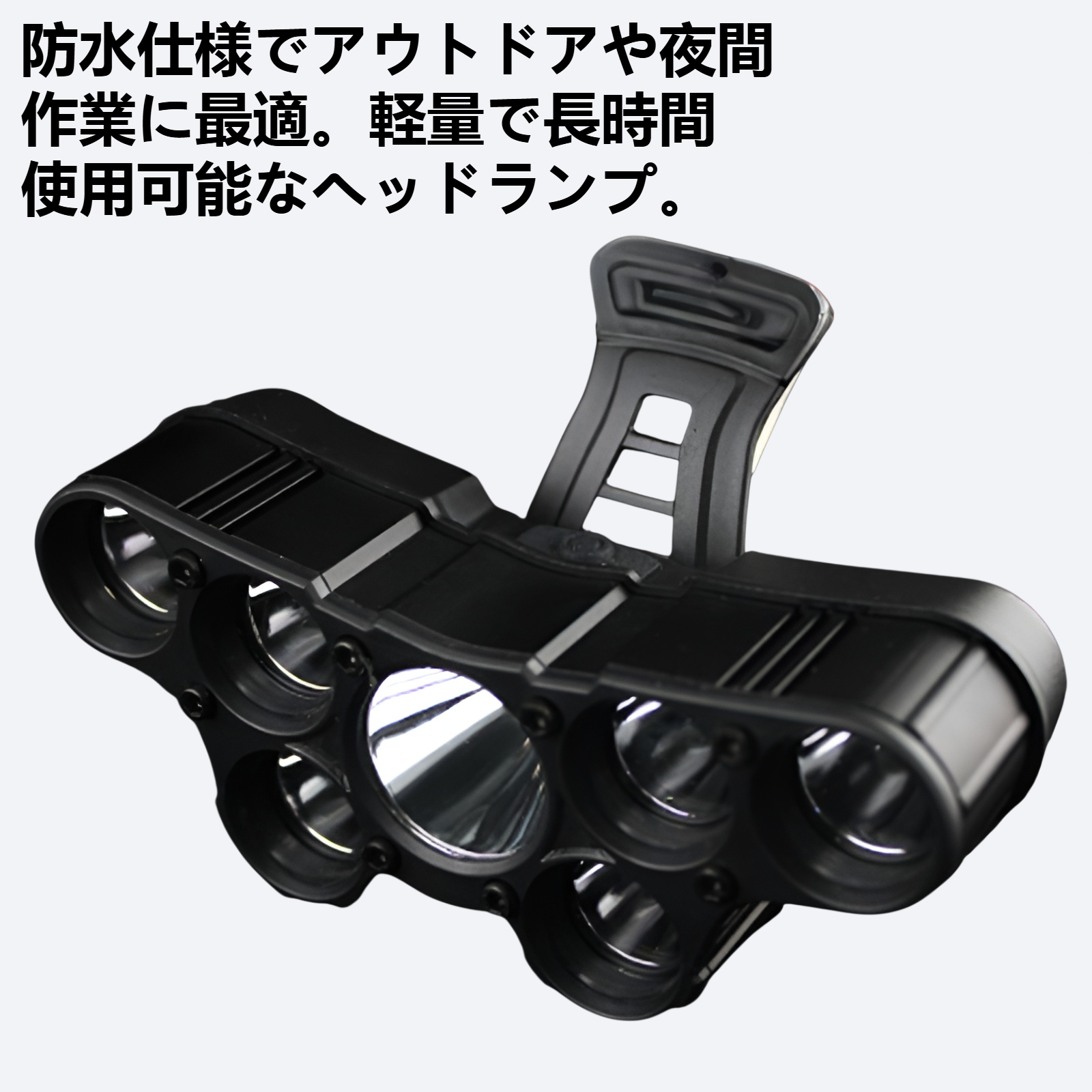 高強度アルミニウム合金製、強力LEDライト搭載。防水仕様でアウトドアや夜間作業に最適。軽量で長時間使用可能なヘッドランプ。